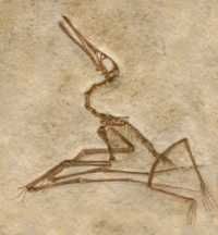 There are two main baramins of pterosaurs: rhamphorhynchoid and pterodactyloid. Rhamphorhynchoid kinds are small to medium sized (usually no larger than a sea gull) with long tails, short heads and necks, and teeth. Pterodactyloid kinds are medium to very large (in fact, they include the largest flying animals that ever lived) with short tails, longer necks and limbs, often crested heads, and usually lack teeth. It's still debated whether these groups are monobaraminic or holobaraminic, and it is one of Project Pterosaur's science goals to answer this question (if we find specimens of both groups, we can determine baraminicity by using Intelligent Design Theory to measure their specified complexity and apply the Dembski-Shannon equation to extrapolate the amount of relative informational loss due to genetic degradation from their perfect Creation.)